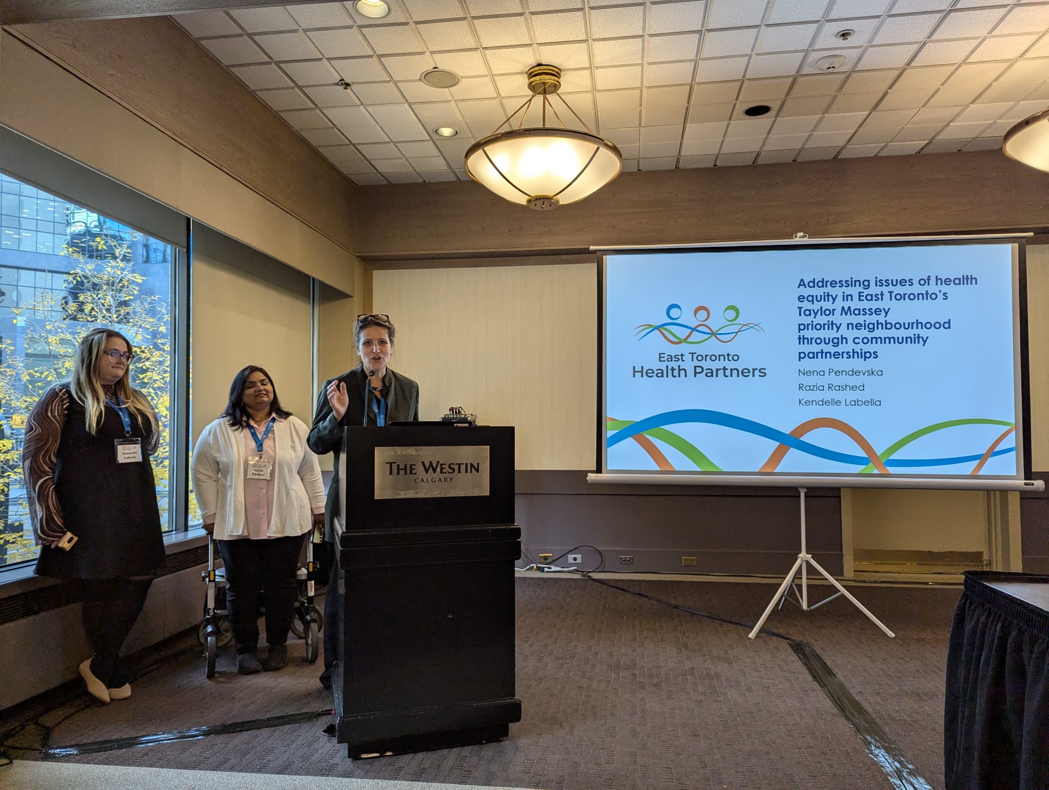 Two people conducting a presentation in a conference room.